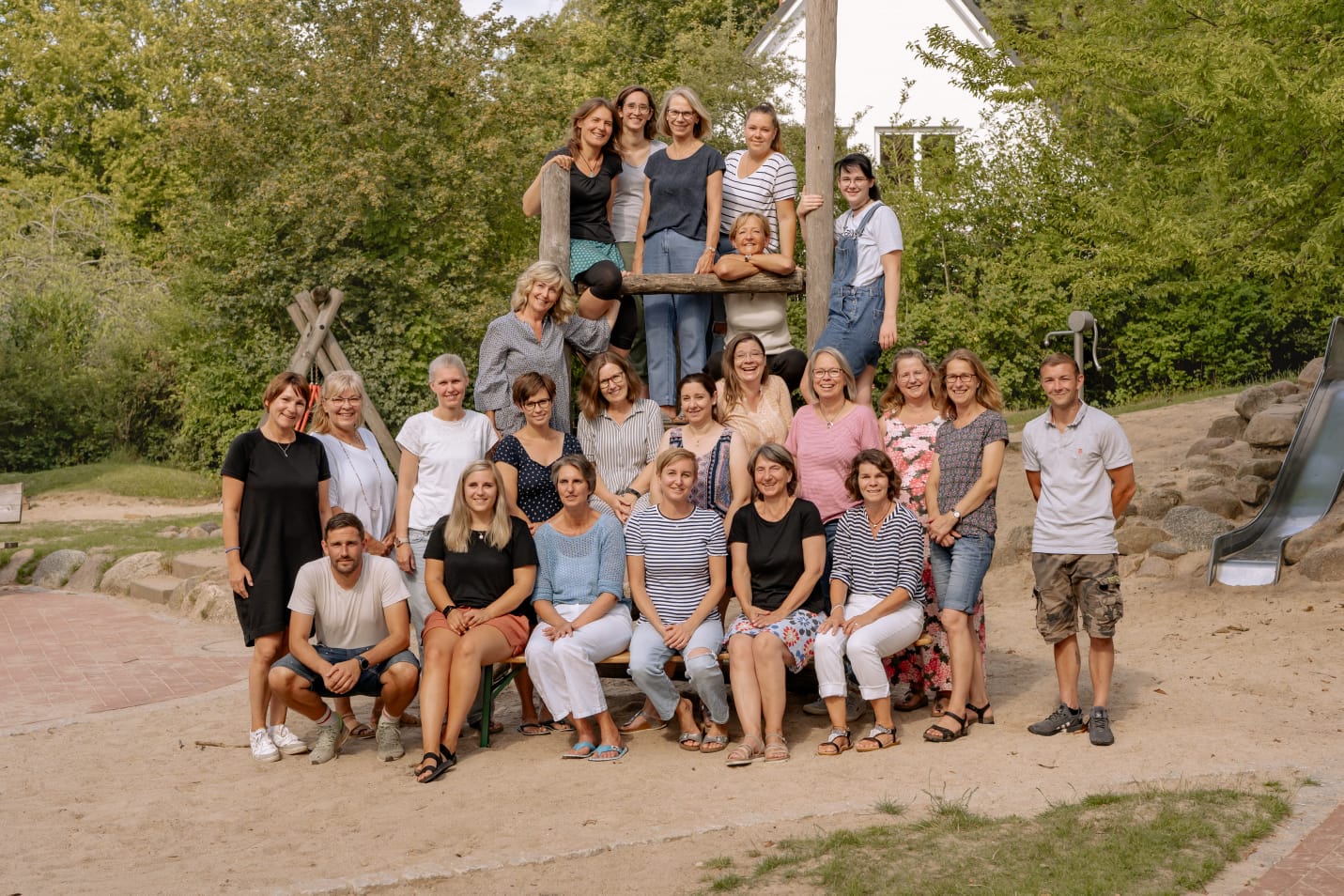 Insgesamt 22 pädagogische Mitarbeiter*innen, zwei Kolleg*innen für die Verwaltung/ Sachbearbeitung, drei Mitarbeiter*innen im Bereich Hauswirtschaft und Raumpflege, sowie einem Hausmeister. Wir sind 28 engagierte, motivierte und für den Alltag mit den vielen Menschen um sie herum aufgeschlossene Fachkräfte.