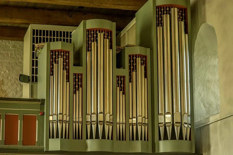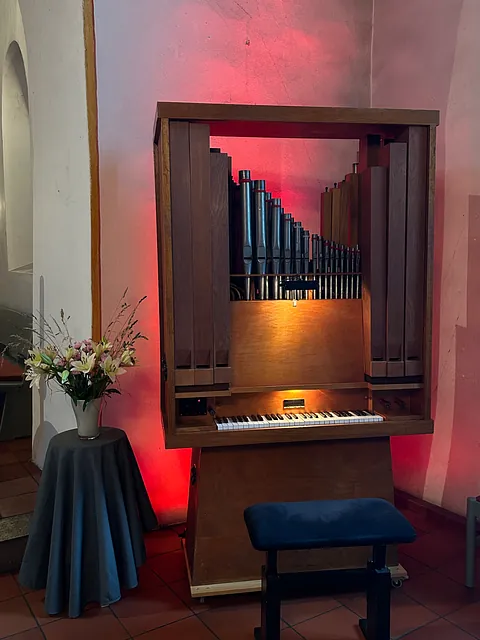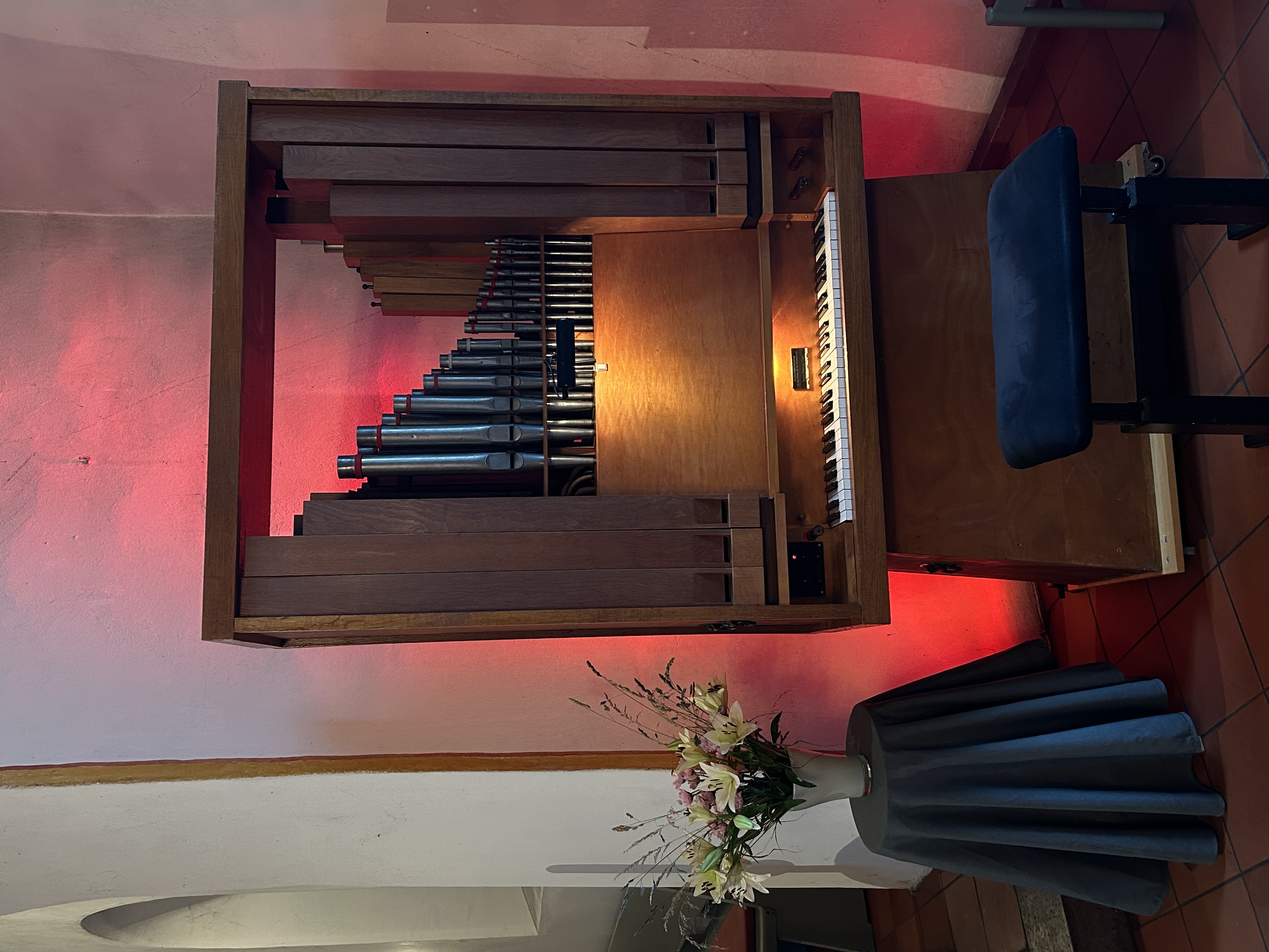 Seit Juni 2025 steht in der Borbyer Kirche eine weitere Orgel in der vorderen rechten Ecke vor dem Chorbogen - unsere neue Chororgel!